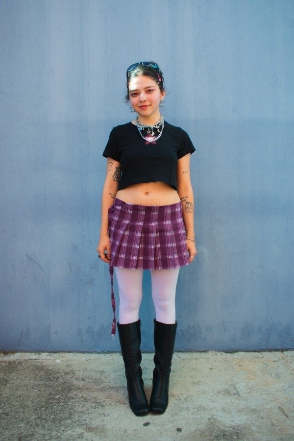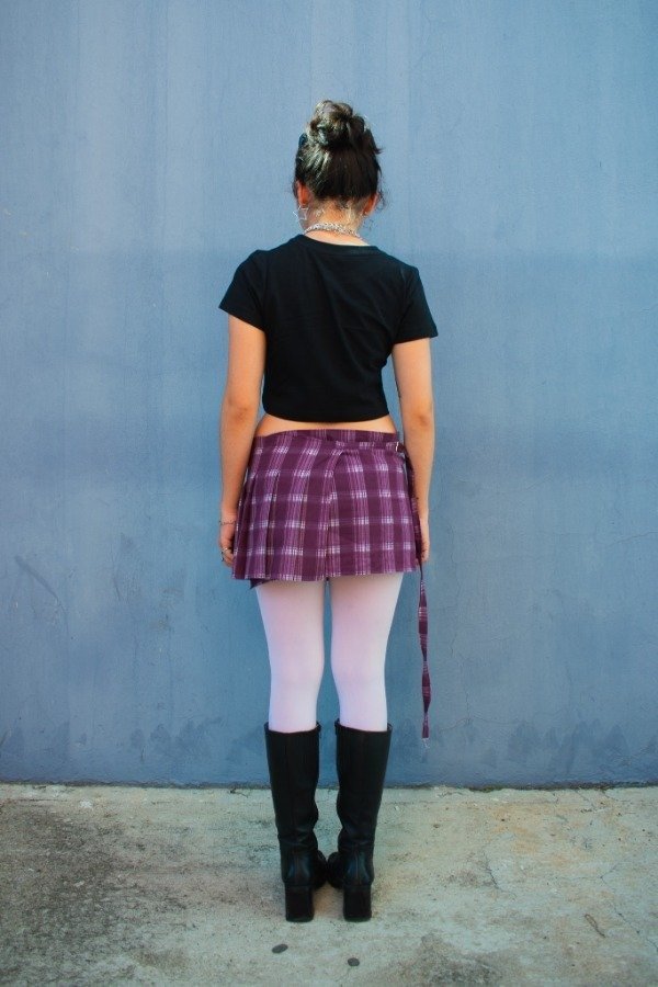 Miniskirt tiro bajo tableada de tela cuadrille 100% algodón, tiene tablas solo en la parte delantera para mayor comodidad y mejor calce. Posee tiras tipo cinto que se ajusta mediante un regulador metálico niquelado (zamak).