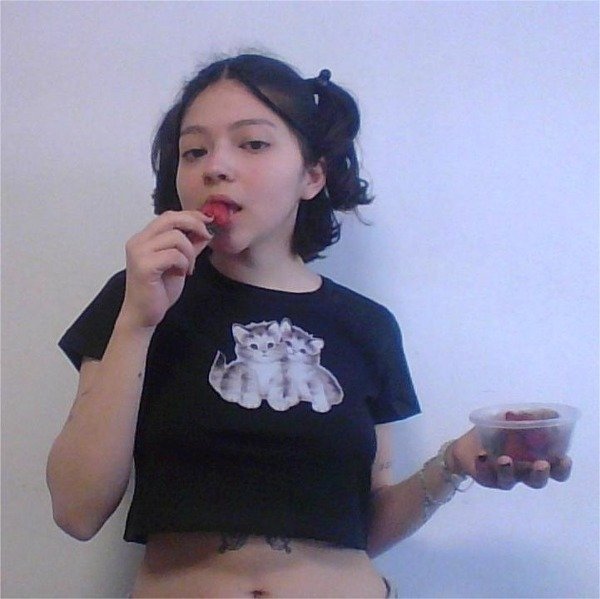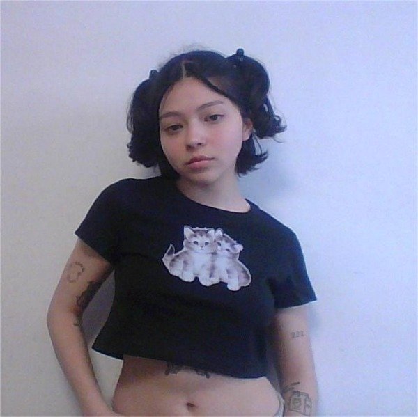 remera con corte baby tee en lycra color negro. estampa delantera en dtf