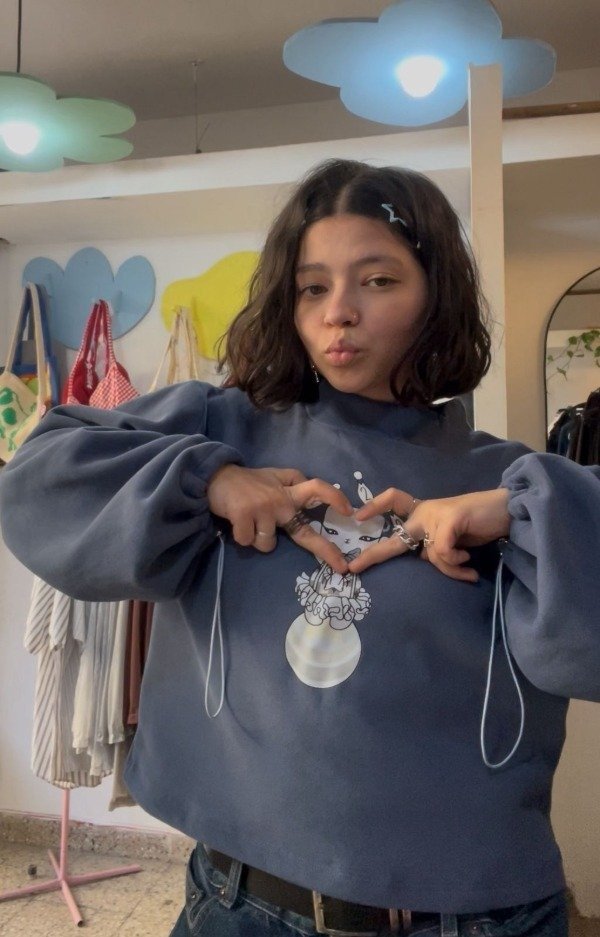 buzo tipo polerón, confeccionado en frisa 100% algodón con mangas acampanadas con elástico para que las ajustes a tu gusto. quise homenajear a una de las figuras que más admiro del mundo del circo: las bailarinas, las acróbatas que me fascinaaaan! siempre soñé con ser una de ellas. Así que dibujé un osito sobre una pelota de circo, haciendo malabares con un tutú de bailarina y una frase muy importante en la espalda: