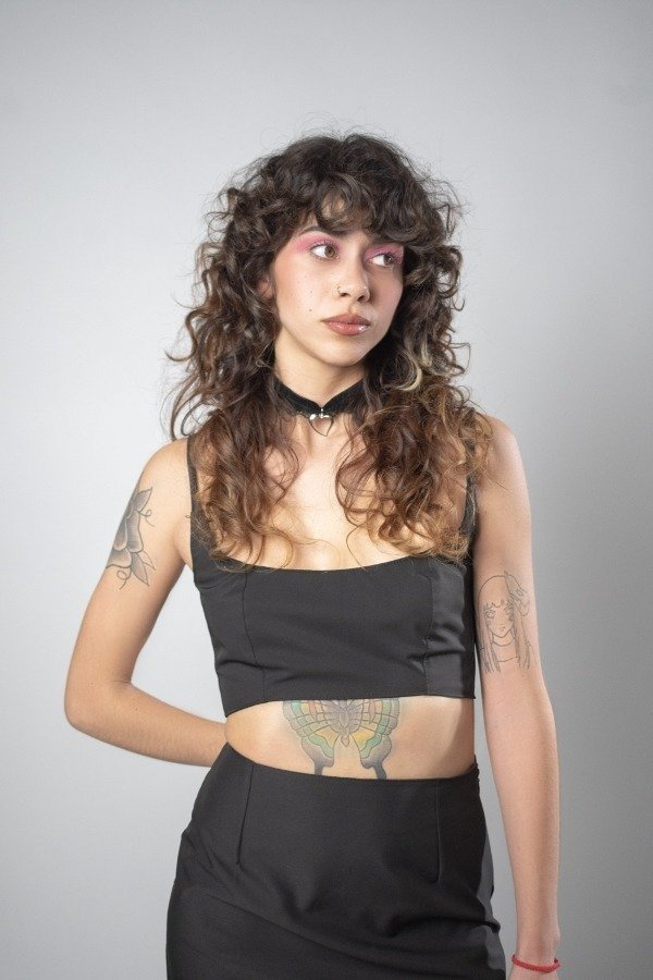 top corset confeccionado en tela sastrera calidad premium, con espalda acordonada y breteles regulables. VIENE CON CINTA DE RASO PARA ACORDONAR INCLUIDA