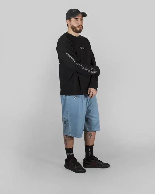 Adaptamos el Pant 818 conservando sus mejores partes: 5 bolsillos, porta llaves, cintura elastizada con cordón ajustable y el fit extra baggy de siempre. El clásico best seller, confeccionada con materiales de calidad, un desarrollo pensado para acompañarte lo máximo. La fusión de la comodidad de una bermuda con la formalidad del denim generan un equilibrio perfecto para llevarla en todo momento.